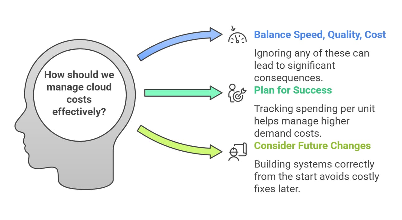 The best approach is to ask questions that make people think about future results, rather than forcing rules on them. This helps teams understand why cost management matters from the beginning.