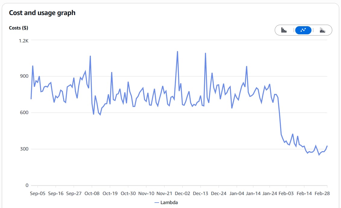 Daily Lambda costs dropped from $800 to $290 starting in early February when the changes went live. What makes this story worth paying attention to is how common this problem is.