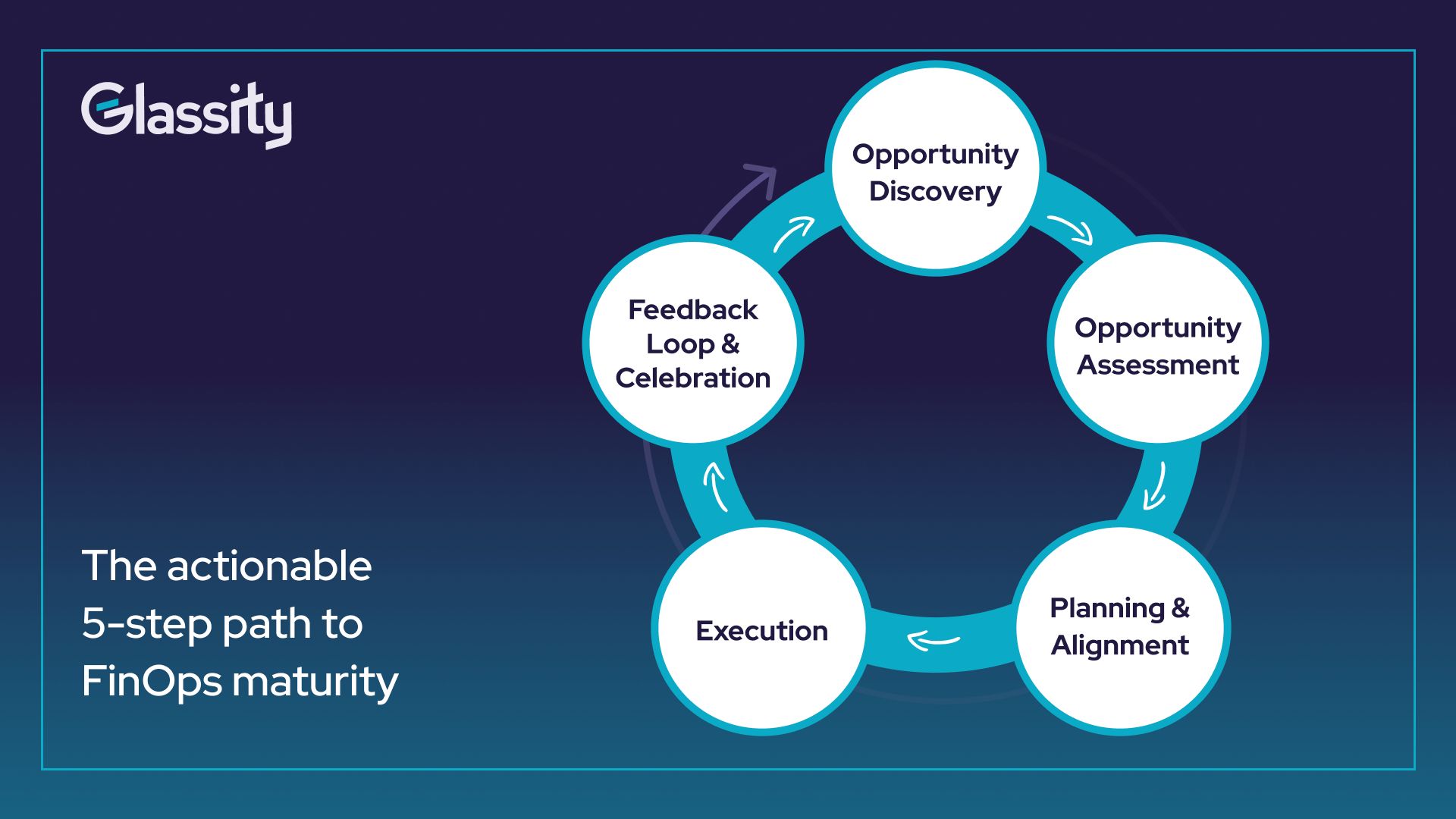 Glassity turns years of FinOps experience into a repeatable 5-step framework: from identifying savings to aligning stakeholders, executing and closing the loop with measurable outcomes.