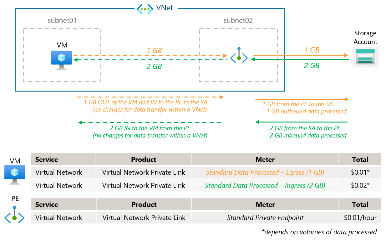Private endpoints charge you for data processing, not just transfer. If you're reading from a storage account through a private endpoint, you pay inbound charges. Writing to storage means outbound charges.