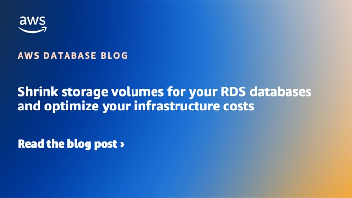 Amazon RDS now allows you to shrink storage volumes using Blue/Green Deployments. This helps optimize infrastructure costs when you need less storage.